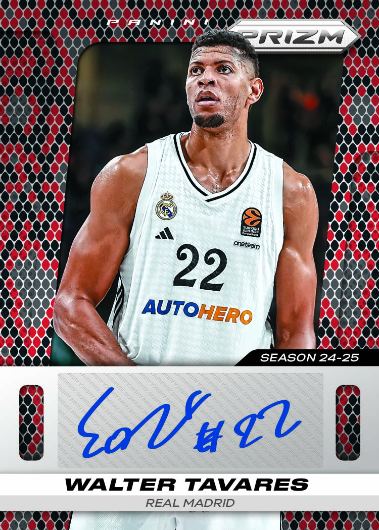 2024-25 Turkish Airlines EuroLeague Prizm HOBBY delivers 1 autograph per box, 15 Prizm parallels, and 5 inserts. Featuring iconic colored parallels, new Prizms Snakeskin, and special 25th Anniversary Diamond SSP inserts celebrating EuroLeague’s milestone year.