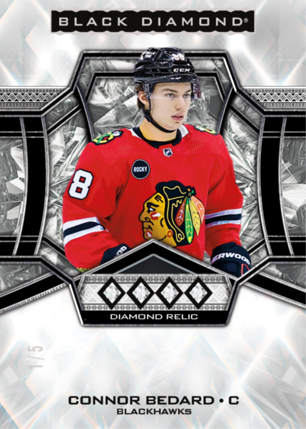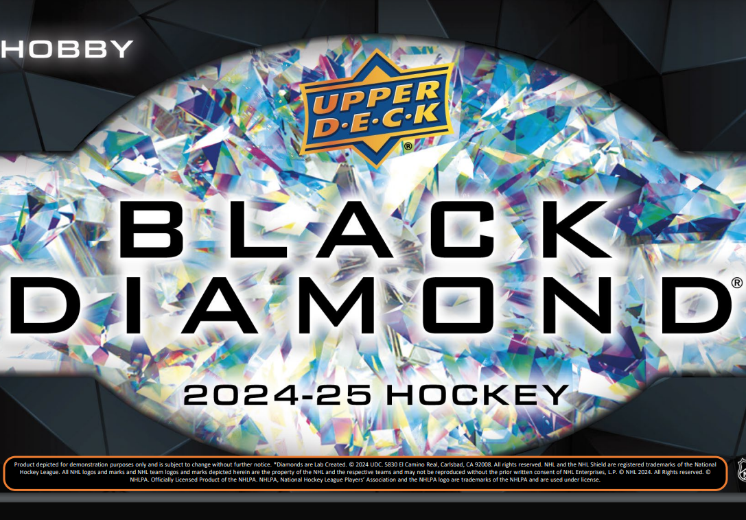 Experience the pinnacle of hockey card collecting with 2024-25 Upper Deck Black Diamond Hockey, the first high-end release of the season. This premium product features a stunning 100-card base set enhanced with genuine lab-created diamonds and exclusive autographs. Each hobby box contains one pack with 6 premium cards, delivering an elite collecting experience with numbered parallels, diamond relics, and rare autographs.