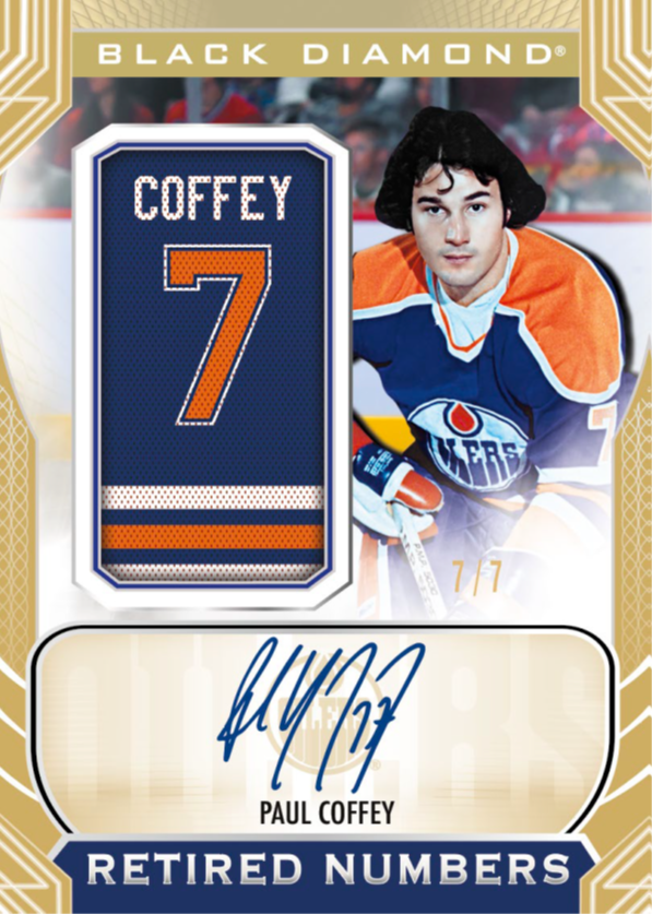 - Oilers Retired Number Patches (#’d to 99) with Gold and Gold Auto variations
