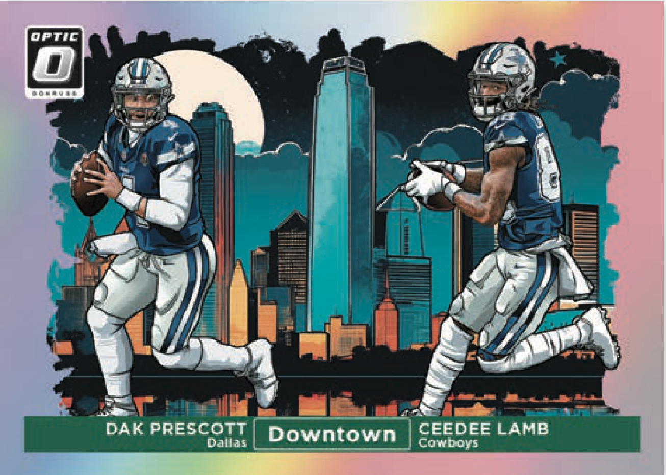 The flagship Donruss Football meets Optichrome technology once again in 2024 Donruss Optic Football. This set features on-card Rated Rookie autographs, short-printed Downtown inserts, and a mix of rookies, superstars, and legends from across the NFL.
