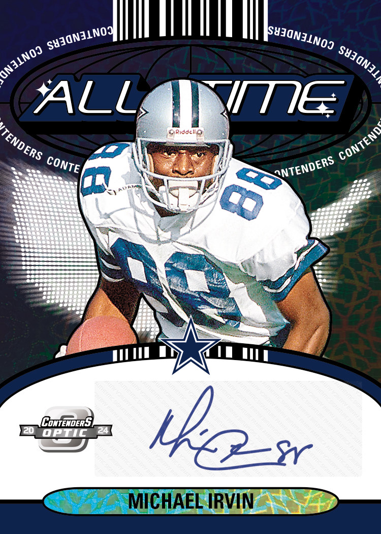 The juggernaut Contenders brand blends magnificently with Optichrome technology to deliver one of the most anticipated products of the year. Contenders Optic is steeped in on-card ink from the impressive 2024 NFL Draft Class, the game’s brightest current stars and greatest all-time legends! Some of Contenders’ most legendary designs through the years make cameos in the stunning Contenders Throwback Rookie Autographs and Contenders Tribute Autographs chases.