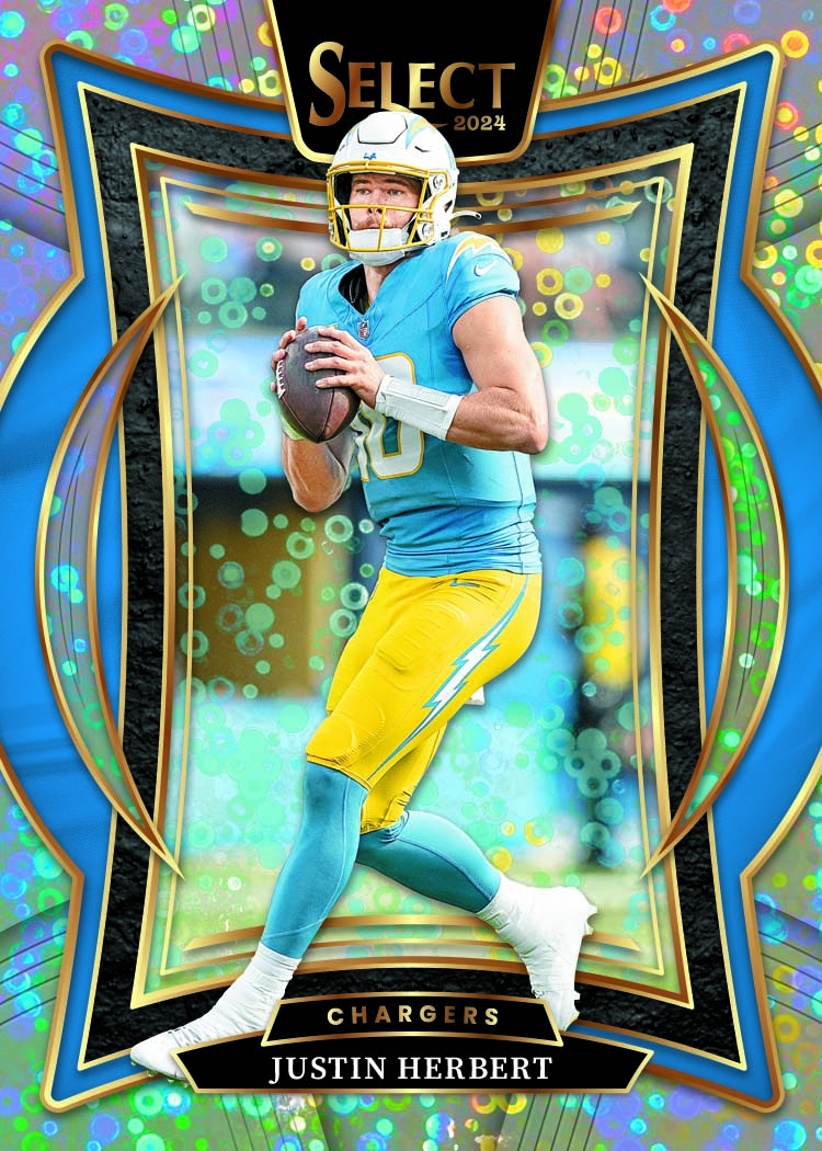 The 2024 Select Football collection offers a comprehensive 500-card base set across five tiers of increasing rarity.