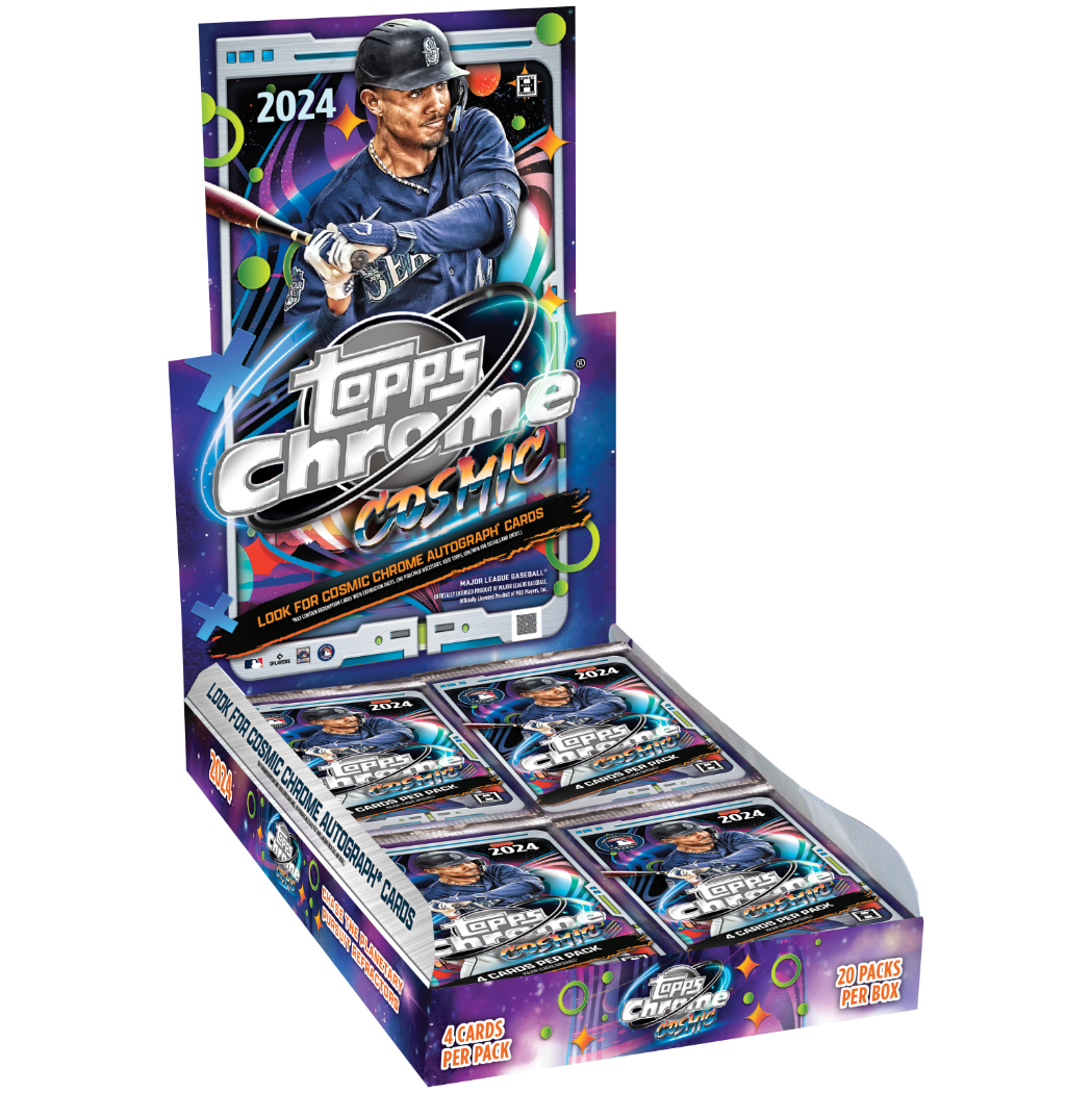 Blast off into the stratosphere with the 2024 Topps Cosmic Chrome Baseball! This galactic spin on chrome technology brings you the hottest stars and rookies in MLB® with out-of-this-world designs and rare parallels.