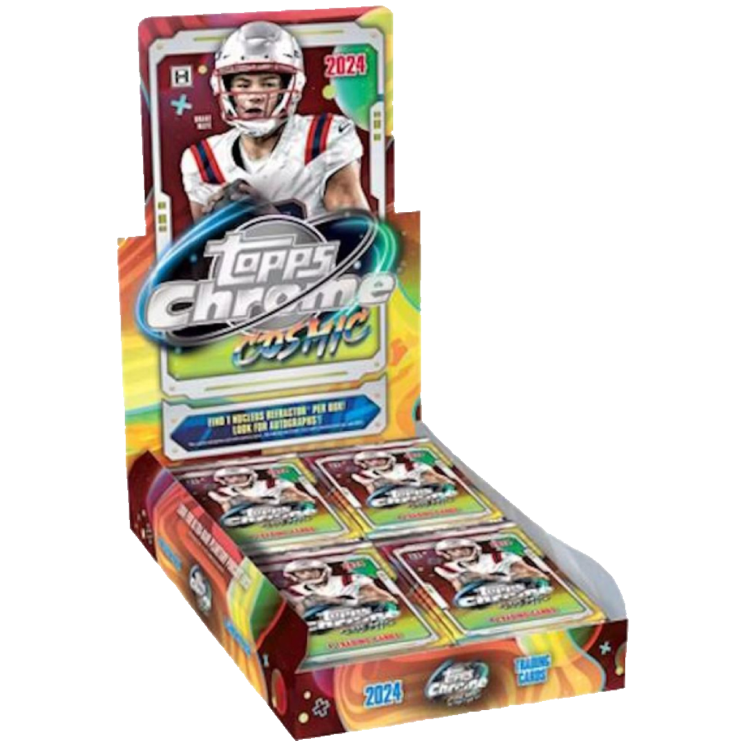2024 Topps Cosmic Chrome Football Hobby delivers space-themed refractors, 4 autos per case, and chase inserts like Planetary Pursuit, Starfractor, and Cosmic Dust!