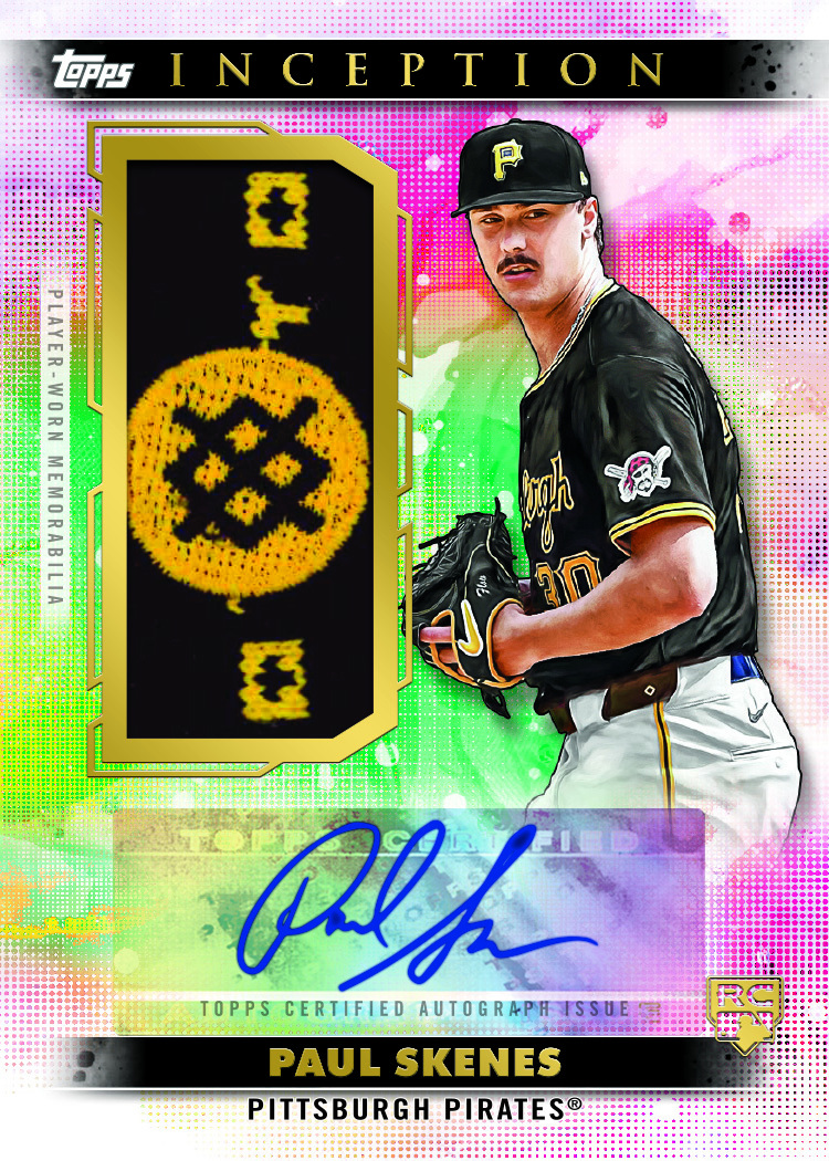 - Inception Autographed Jumbo Patch & Hat Patch Cards – Massive hat/button/tag relic autos (Jumbo Patch Base 1:36, Hat Patch Button/59fifty/Laundry Tag/MLB Logo/Team Logo 1:944 each; Ultra-rare)
