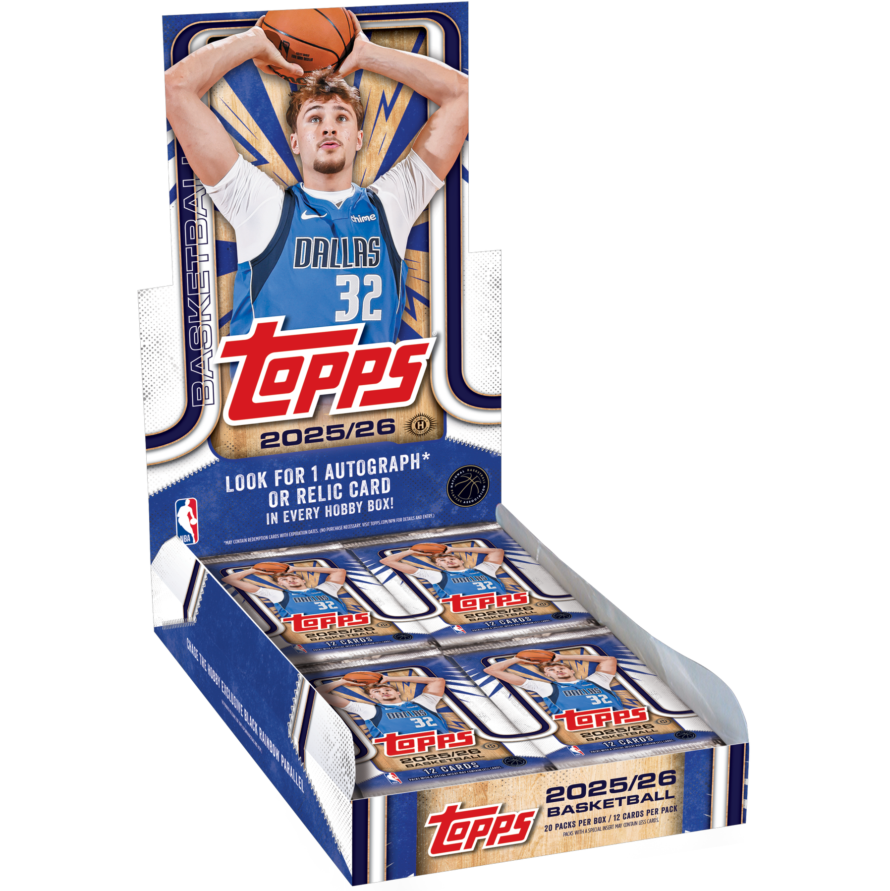 2025-26 Topps Basketball Hobby delivers 1 autograph or relic per box, with 20 packs of 10 cards each. Chase exclusive Hobby case hits, ultra-rare Home Court & Comic Court SSPs, and Rookie Photo Shoot dual autos. Deep checklist featuring top rookies, stars, and NBA legends in a bold Topps return.