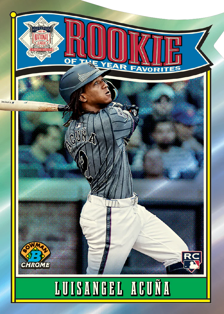 Each pack also delivers 2 Chrome Prospects, 1 Base Card Rookie Red RC Variation, and 1 Insert Card. Breaker Delight boxes exclusively feature Geometric parallels in a vibrant array of serial-numbered colors, alongside HTA-only autograph parallels!