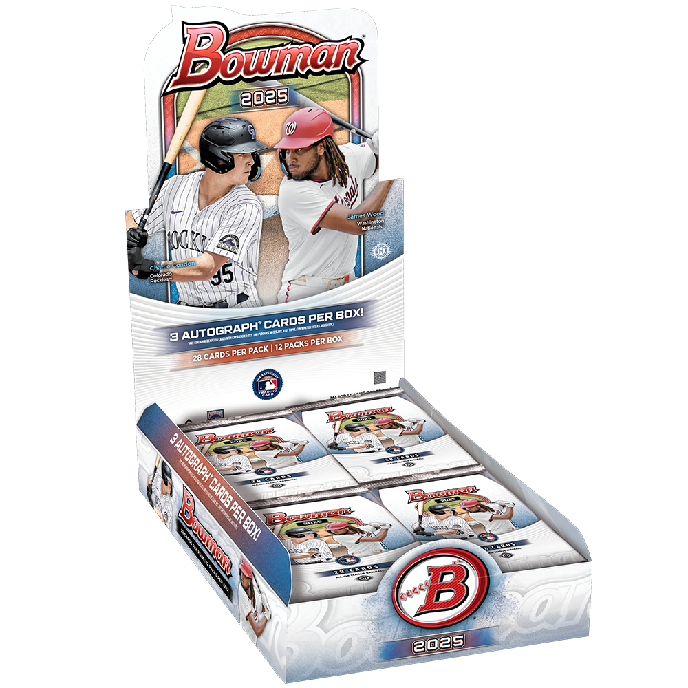 The 2025 Bowman Baseball Breaker Delight is built for serious collectors and breakers seeking an ultra-premium, hit-packed experience. Each box delivers one jumbo pack loaded with 3 autographs, 3 numbered Geometric parallels (including multiple Breaker Exclusive colors), and the chase for the game’s brightest young rookies and MLB veterans. Find cards and autographs from headline prospects and stars like Dylan Crews, Roki Sasaki, Coby Mayo, Luisangel Acuña, James Wood, JJ Wetherholt, Charlie Condon, Travis Bazzana, Jac Caglianone, and Walker Jenkins.