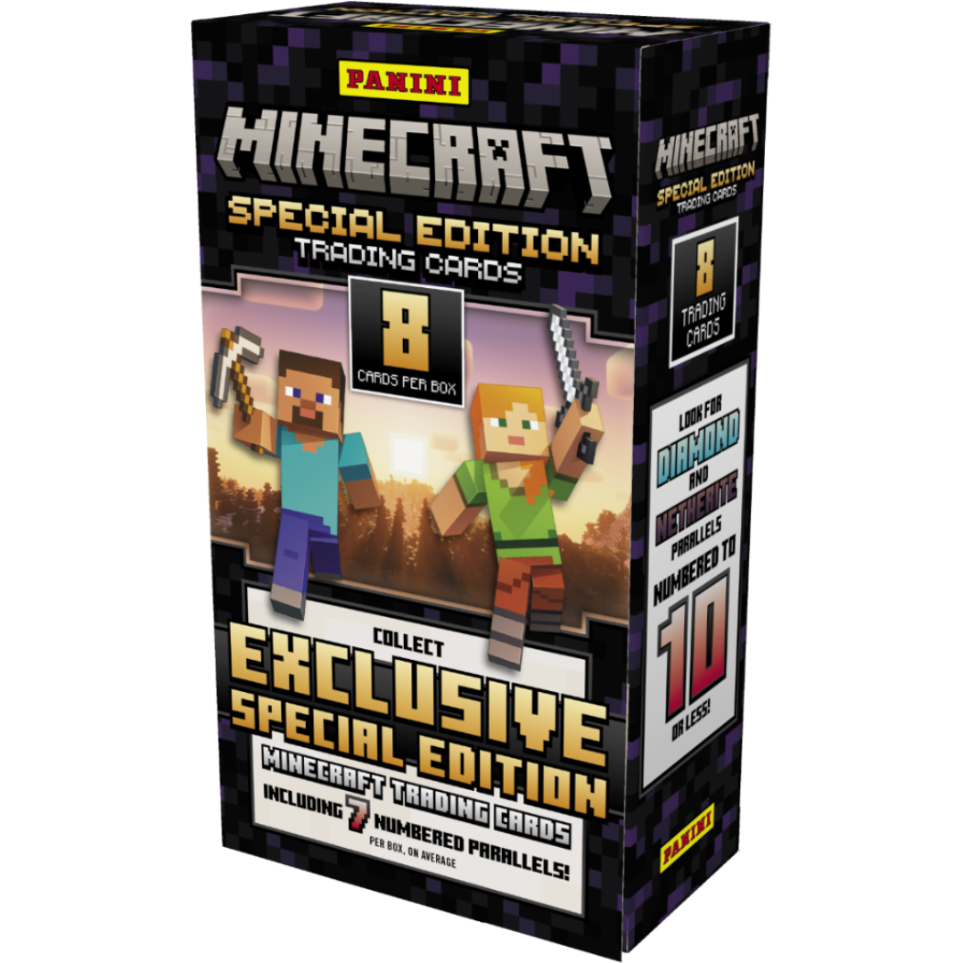 2025 Minecraft Hobby is a premium Panini release that brings the immersive Minecraft universe to trading cards. Discover beloved game characters, vivid mobs, and iconic biomes in an expansive checklist designed for Minecraft fans and collectors alike. Only in this Hobby product, every box grants exclusive parallels and key inserts—ideal for fans eager for spectacular chase content. Highlights span legendary game figures and unique worlds drawn from the Minecraft phenomenon.
