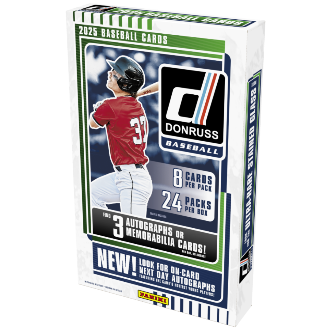 Donruss Baseball returns in 2025 with an impressive collection featuring the game’s top Legends, Stars, Rookies, and Prospects. This Hobby edition delivers a premium collecting experience with incredible parallels such as Red, Black, and Gold Vinyl, alongside fan-favorite insert sets like Unleashed, Hit List, and Debut Dominance.