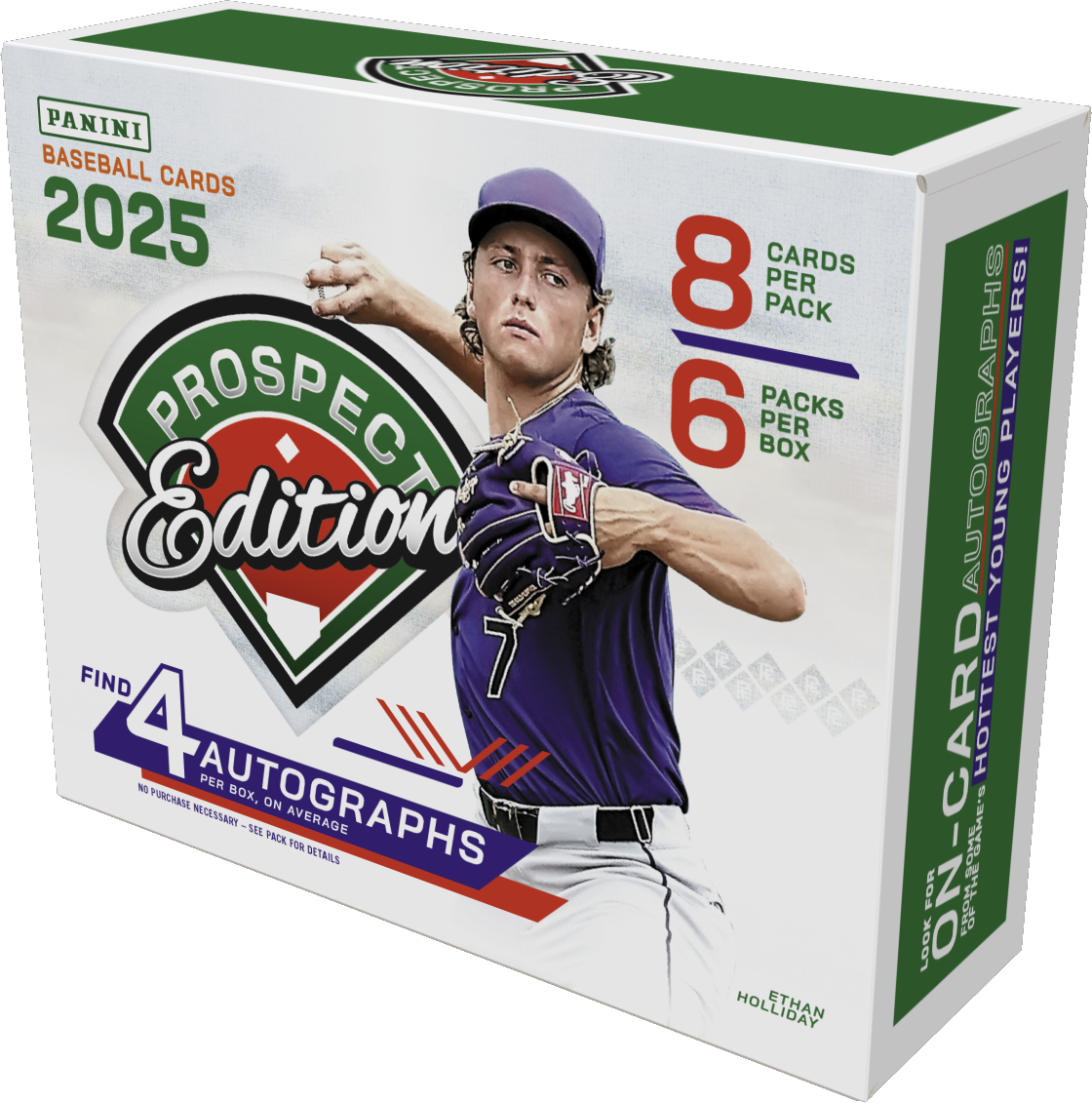 Find top prospects and rookies in 2025 Prospect Edition Baseball Hobby! Each box delivers 4 autographs, 12 inserts or parallels, and 6 Holo Prospect Tickets. Chase the ultra-rare Kaboom! case hit and exclusive Hobby parallels. Deep checklist of draft picks, rising stars, and major league hopefuls!