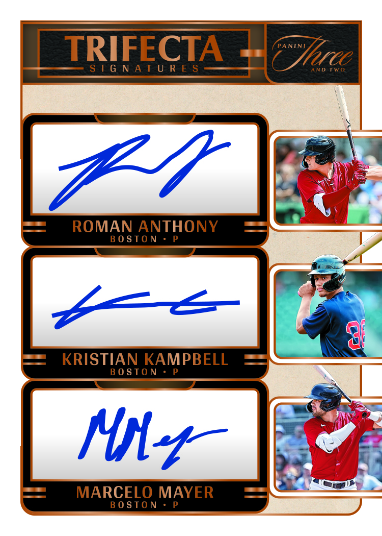 - Trifecta Signatures – Triple on-card autographs from up-and-coming stars and veteran greats.