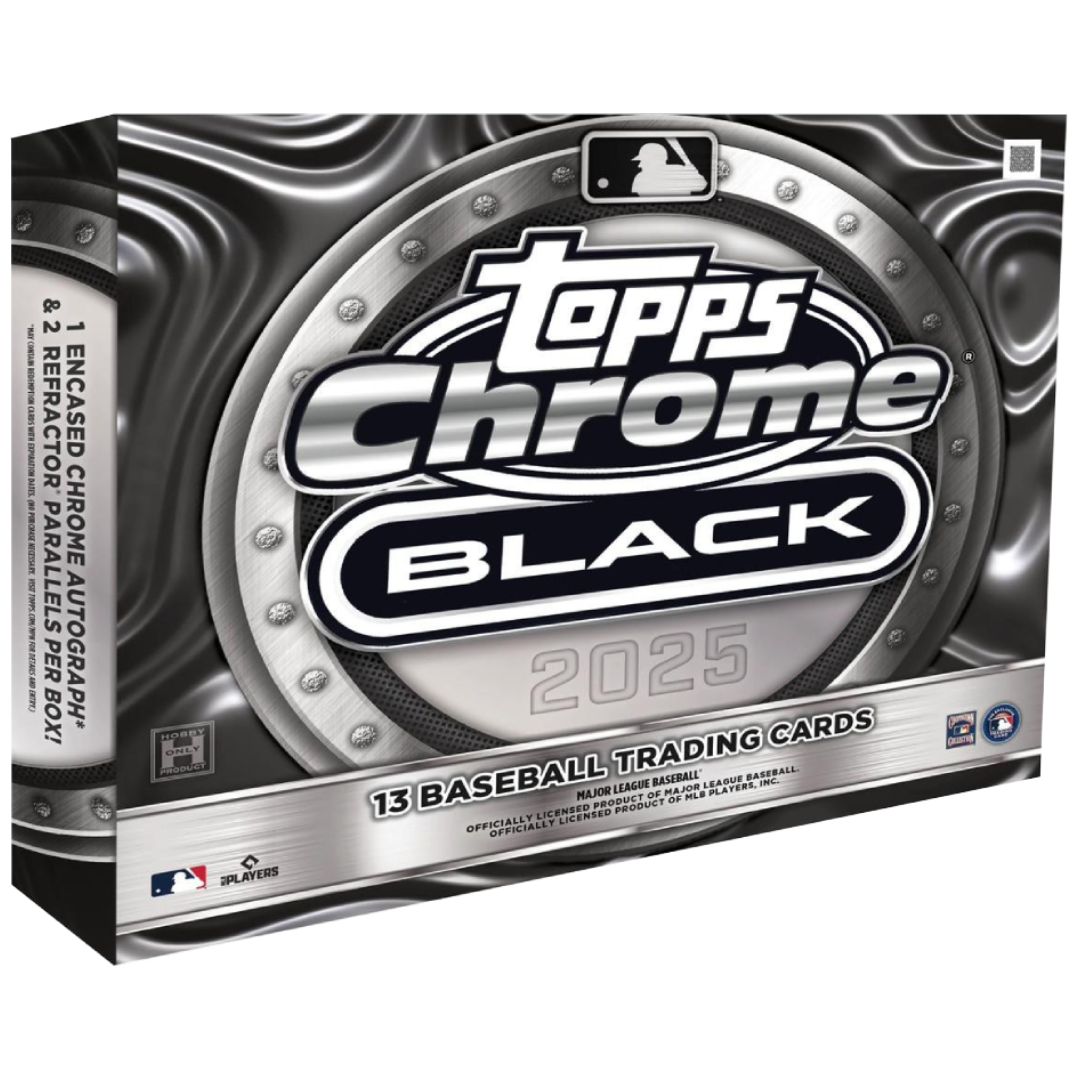 2025 Topps Chrome Black Baseball returns with a premium Chrome Black finish and a loaded autograph lineup. Each box contains 1 Encased Autograph Card, highlighting the game’s brightest stars and rookies. New inserts like Hit the Lights and Nocturnal make their debut alongside layered Depth of Darkness cards.