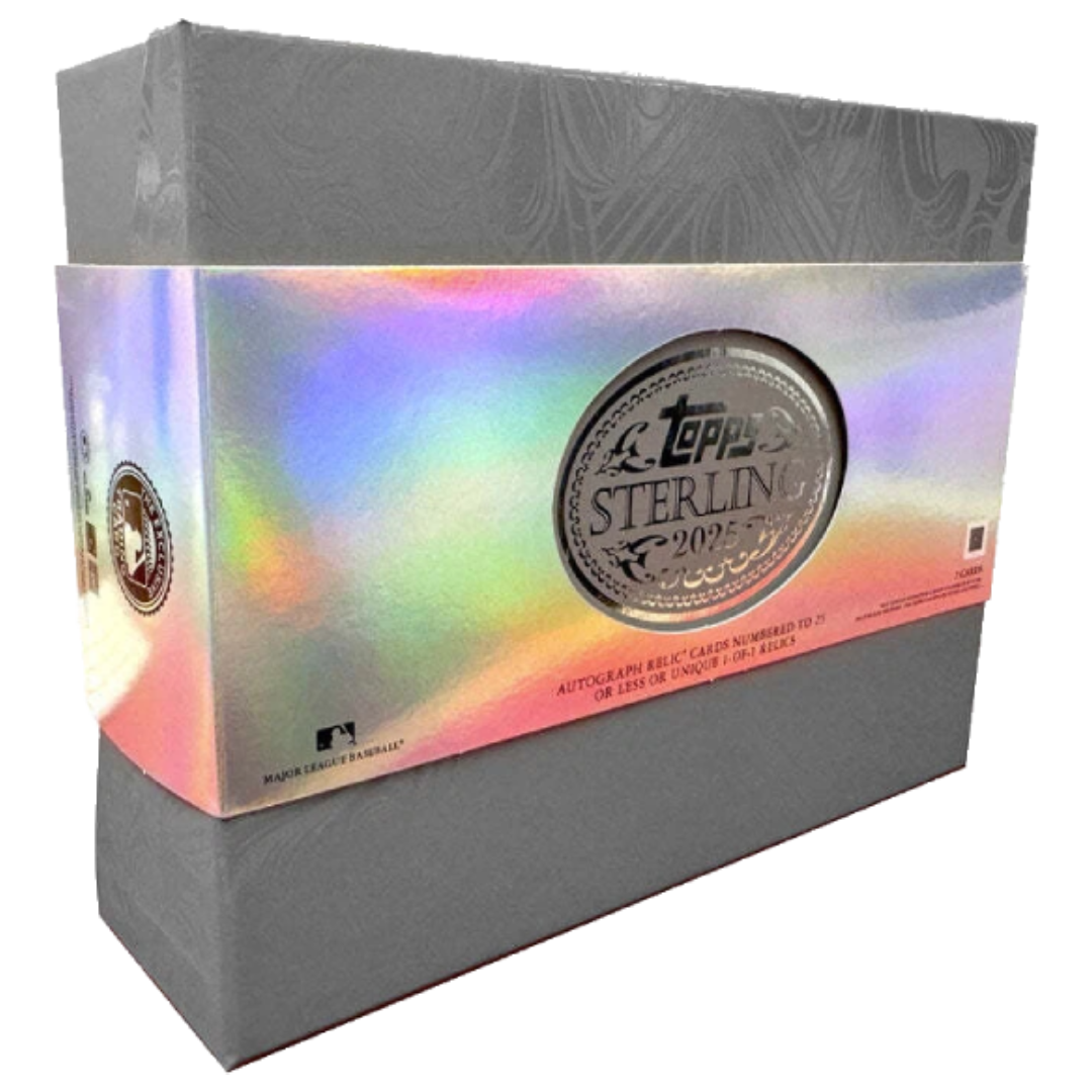 The 2025 Topps Sterling Baseball delivers two cards per box: each with an on-card autographed relic numbered to 25 or less, and one themed unique relic or additional autographed relic. Chase 1/1 relics, jumbo patches, unique cut signatures, and top rookies and legends in this high-end Hobby exclusive!