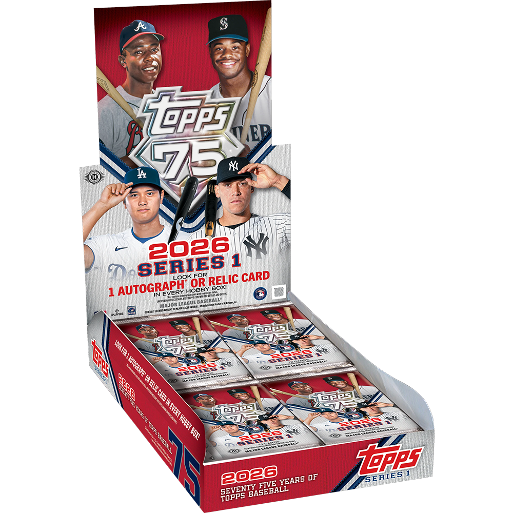 2026 Topps Series 1 Baseball Hobby is the flagship MLB trading card release, delivering a comprehensive 350-card base set featuring MLB stars, legends, and a loaded new rookie class. Designed to celebrate 75 years of Topps heritage, this Hobby exclusive offers deep content for both set builders and high-end chasers. Find autograph and relic cards from top names like Aaron Judge, Shohei Ohtani, Ronald Acuña Jr., Bobby Witt Jr., and Mike Trout, plus rising rookies Jac Caglianone, Roman Anthony, Jacob Misiorowski, Samuel Basallo, and Chase Burns. Chase the return of iconic 1991 Topps Baseball inserts, premium Hobby-only rainbow foil parallels, and ultra-rare rookie SSPs. Each box also includes 2 exclusive Silver Promo Packs loaded with Chrome parallels and autographs.