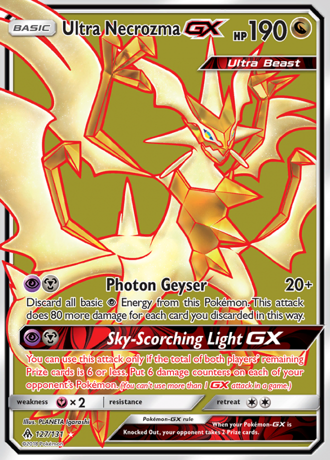 - Necrozma continues to take the Pokémon world by surprise in the Pokémon TCG: Sun & Moon—Forbidden Light expansion! The fierce and mysterious Legendary Pokémon has taken on a new form as Ultra Necrozma-GX, and other Pokémon gather to welcome this new light…or to resist it. Lucario-GX, Greninja-GX, Zygarde-GX, Yveltal-GX, Naganadel-GX, even Volcanion and the majestic Arceus must choose a side. This impressive expansion delivers more awesome Prism Star cards, which are so powerful, you can have only one of each in your deck—and once used, they go into the dreaded Lost Zone, never to return. Players can also look forward to lots of cool Pokémon and Supporters originally encountered in the beautiful Kalos region. Discover awesome Pokémon and mysterious treasures in the Pokémon TCG: Sun & Moon—Forbidden Light expansion!